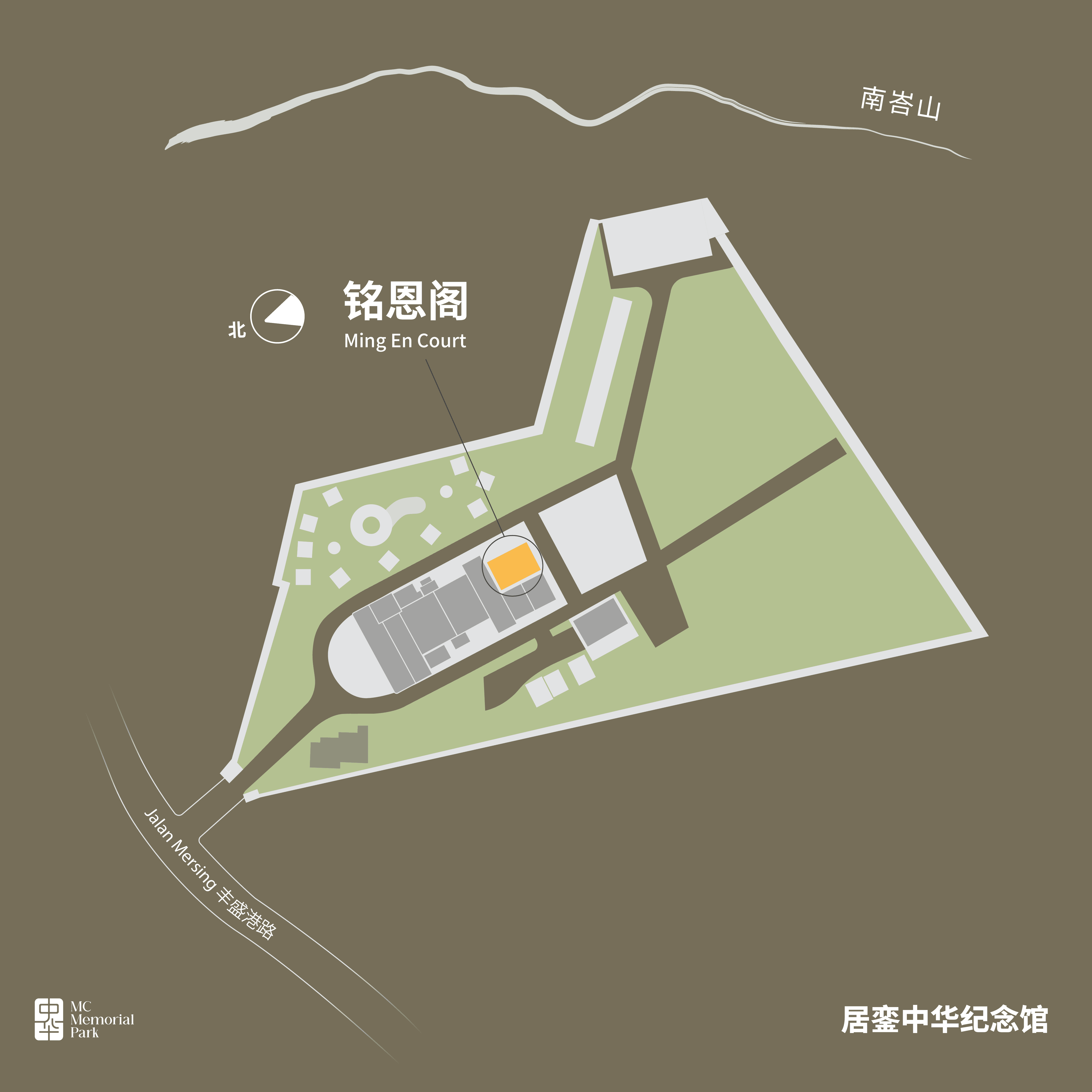铭恩阁位于居銮中华纪念馆核心区域,与礼仪空间、休息区及纪念花园相互连贯。